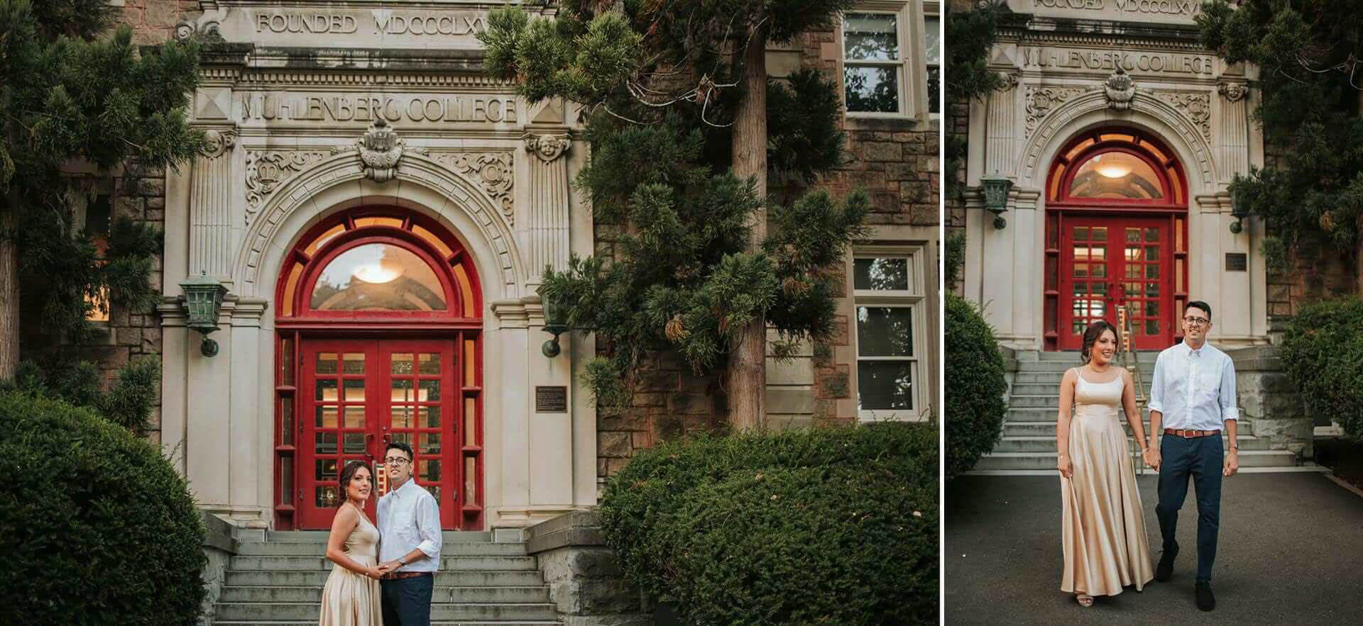 For couples considering Muhlenberg College for an engagement session, it offers something most locations rarely do — architectural character, open space, and an intimacy that scales beautifully whether you’re there at noon or chasing the last hour of light.