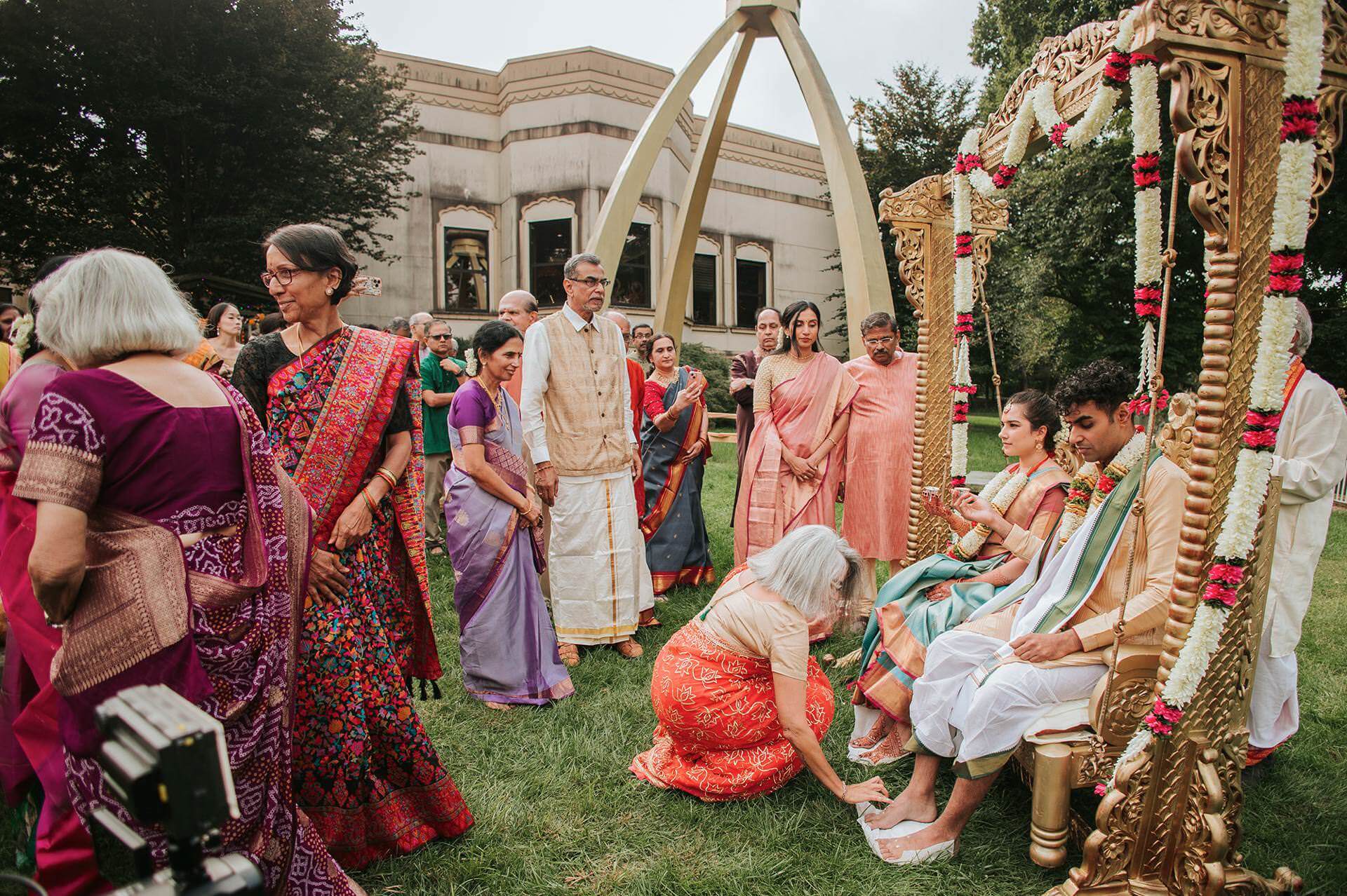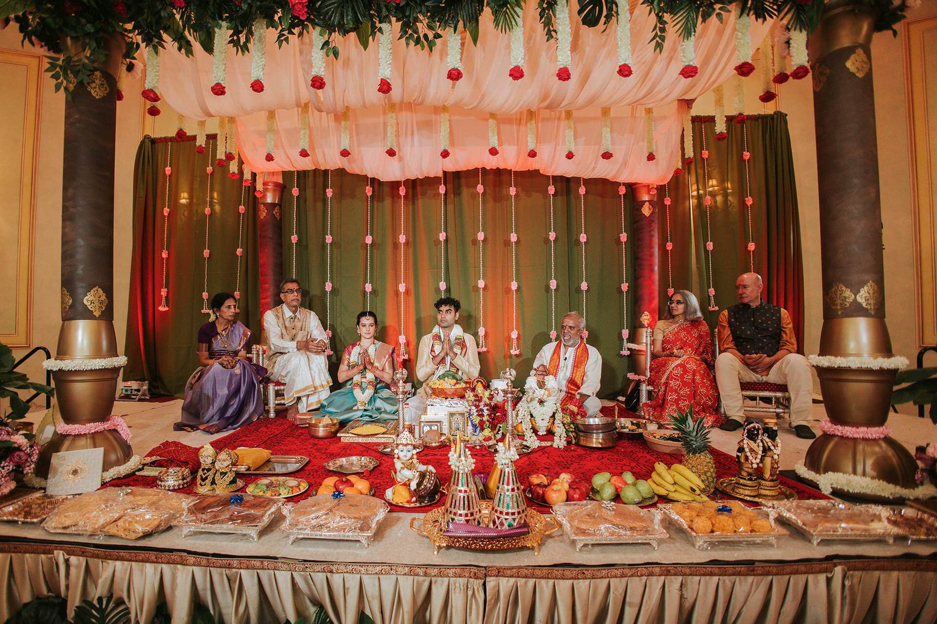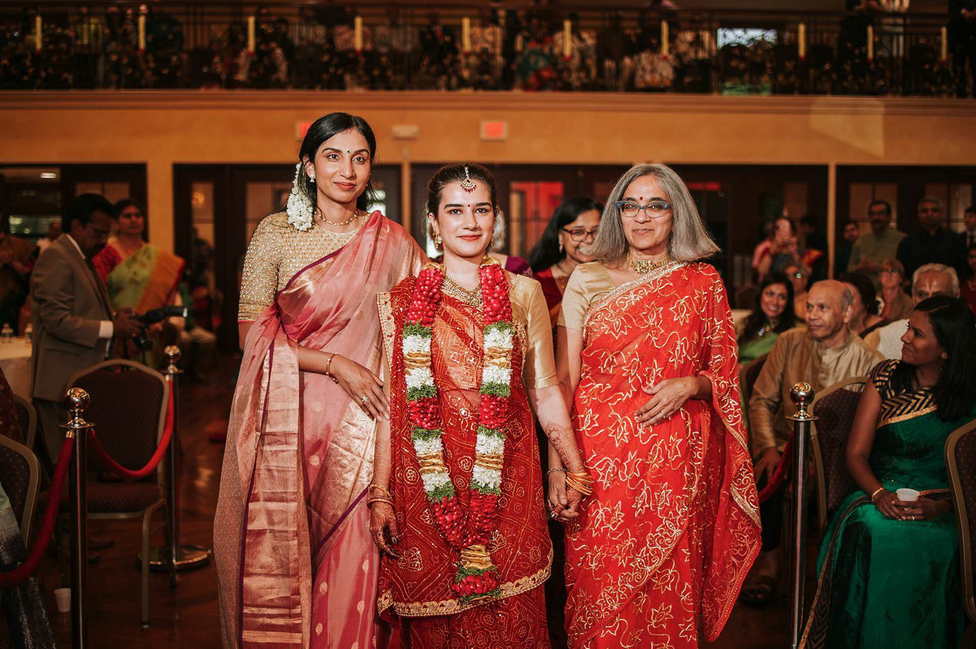 The Hindu Samaj Temple of Mahwah carries its own quiet authority. From the moment guests arrived, the atmosphere had already settled into something ceremonial — not stiff, not performative, but genuinely sacred. Marigold and jasmine. The low hum of preparation. Families reuniting, laughter moving through the corridors like a second language.