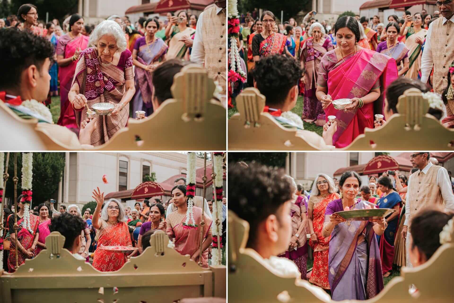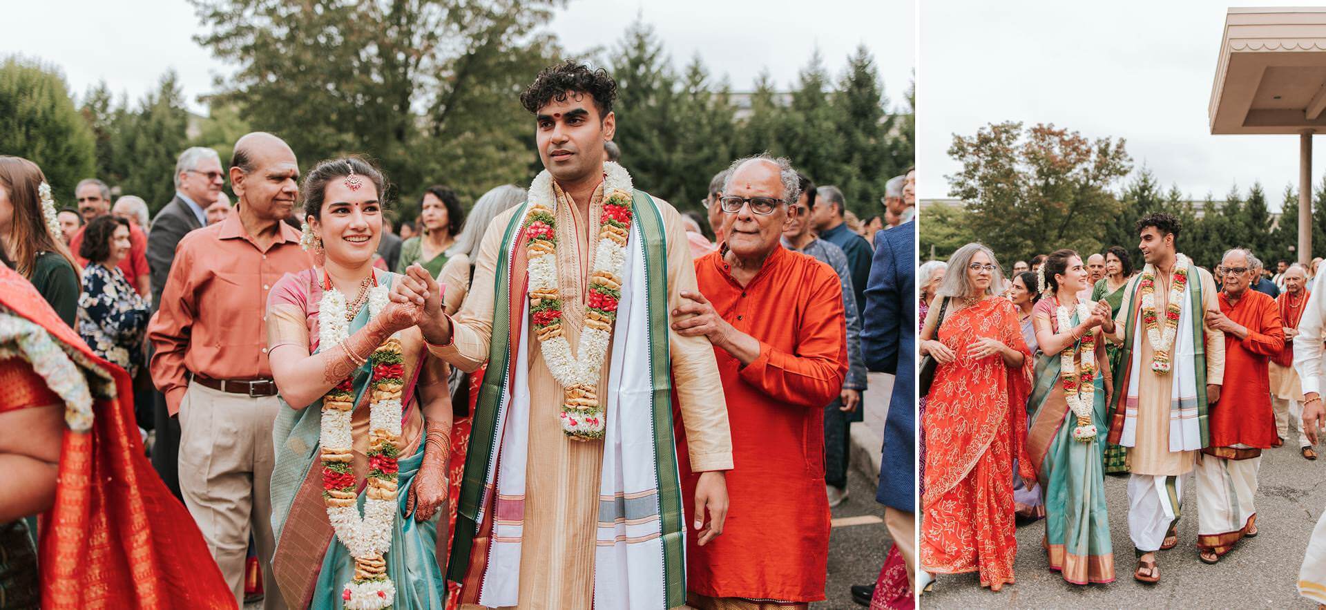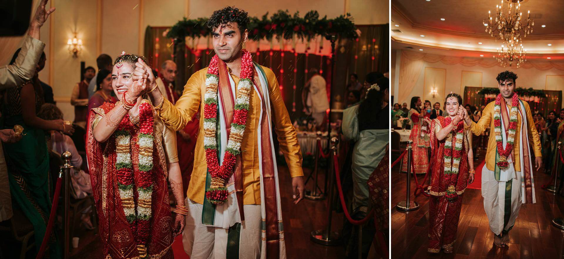 The Hindu Samaj Temple of Mahwah carries its own quiet authority. From the moment guests arrived, the atmosphere had already settled into something ceremonial — not stiff, not performative, but genuinely sacred. Marigold and jasmine. The low hum of preparation. Families reuniting, laughter moving through the corridors like a second language.