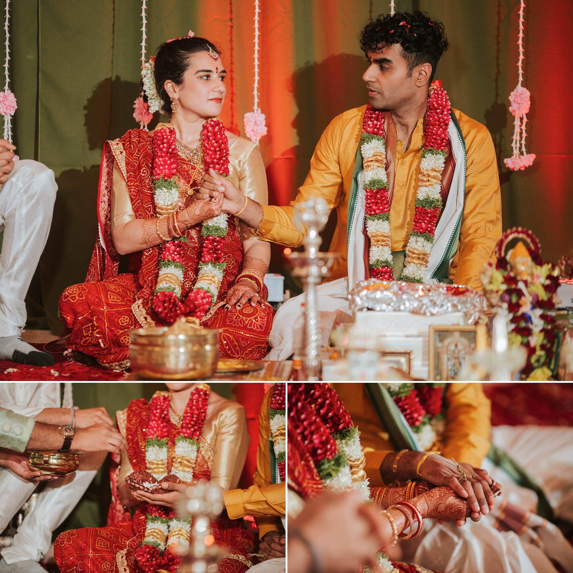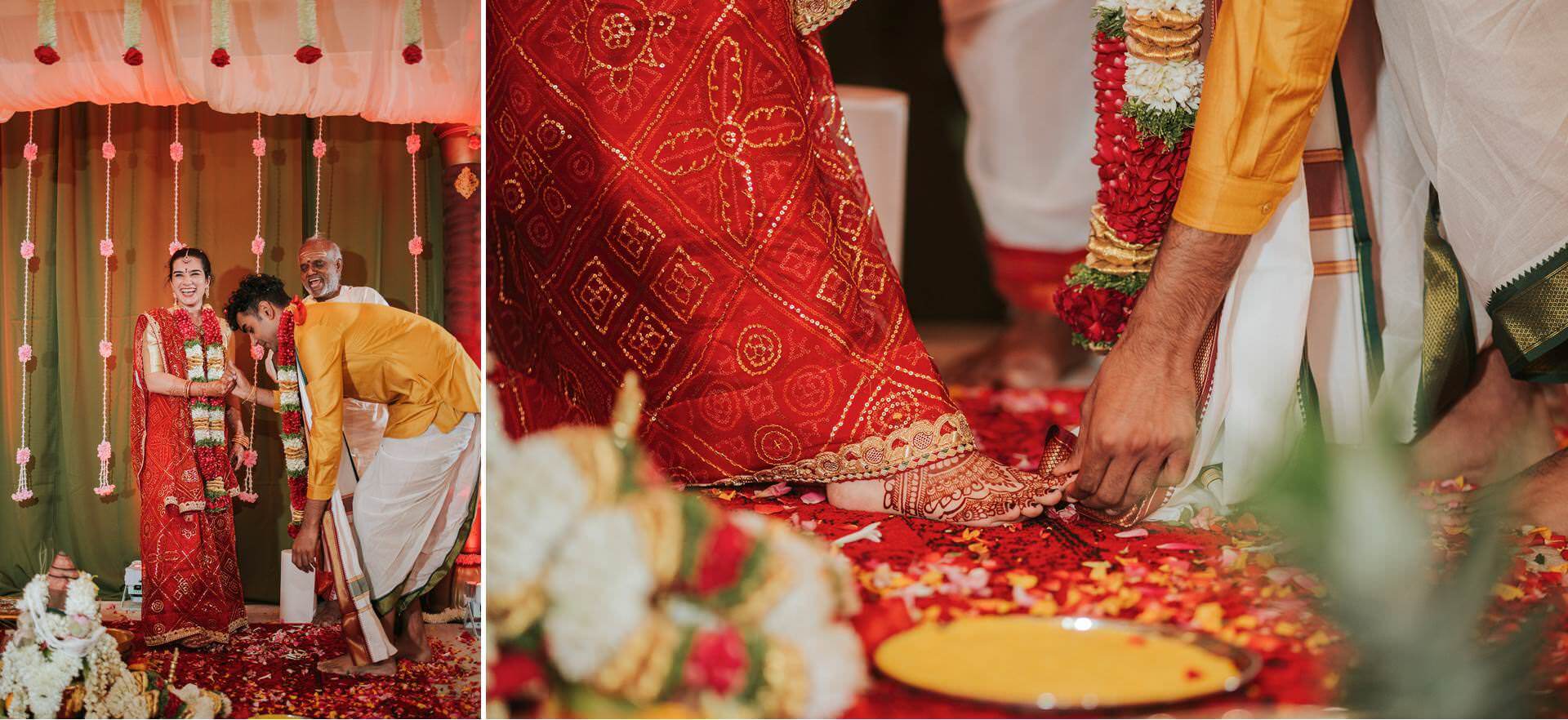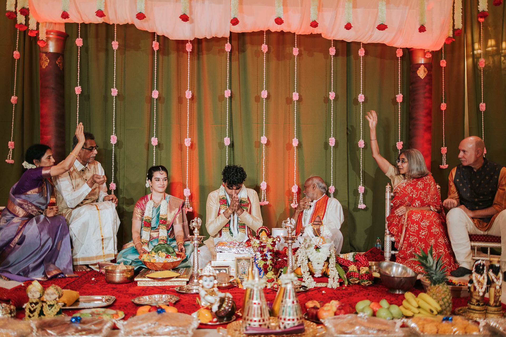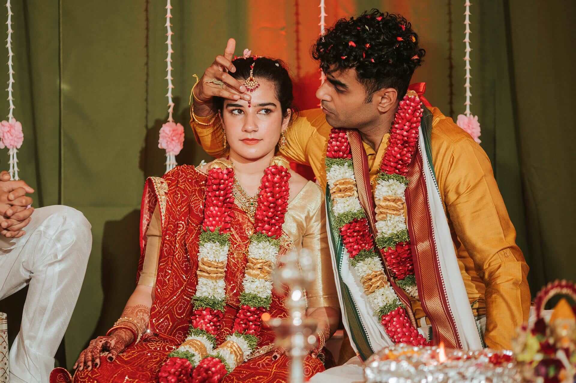 South Indian wedding traditions carry a particular visual and emotional richness. The ceremonies are layered, deliberate, and deeply choreographed by generations of meaning. The exchange of garlands — the maalai maatral — drew laughter and gentle competition from the families watching, the kind of joyful chaos that erupts when everyone in the room knows exactly what they’re supposed to feel. The saptapadi, the seven steps taken together around the sacred fire, was something else entirely. Seven promises. Seven circles. Each one is quieter and more concentrated than the last.