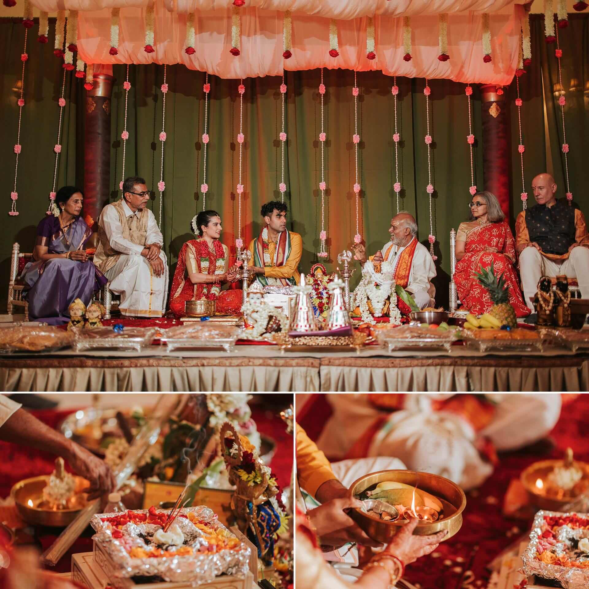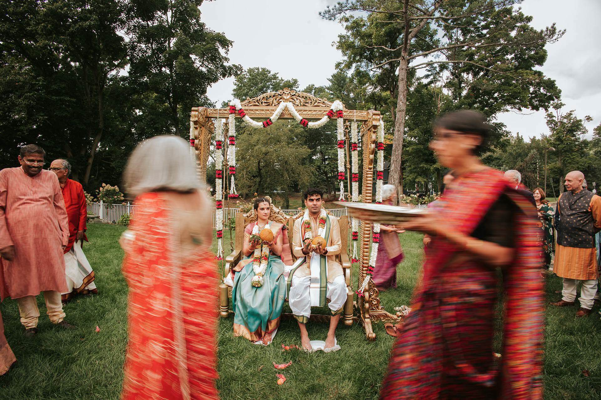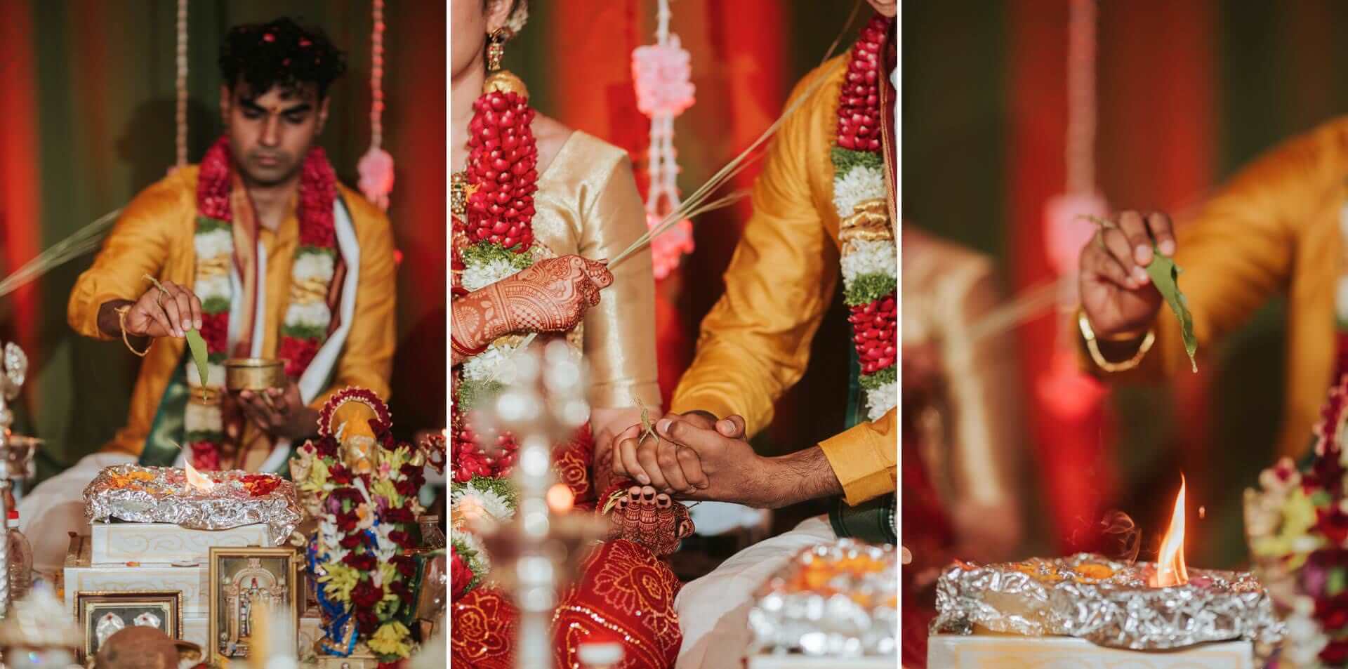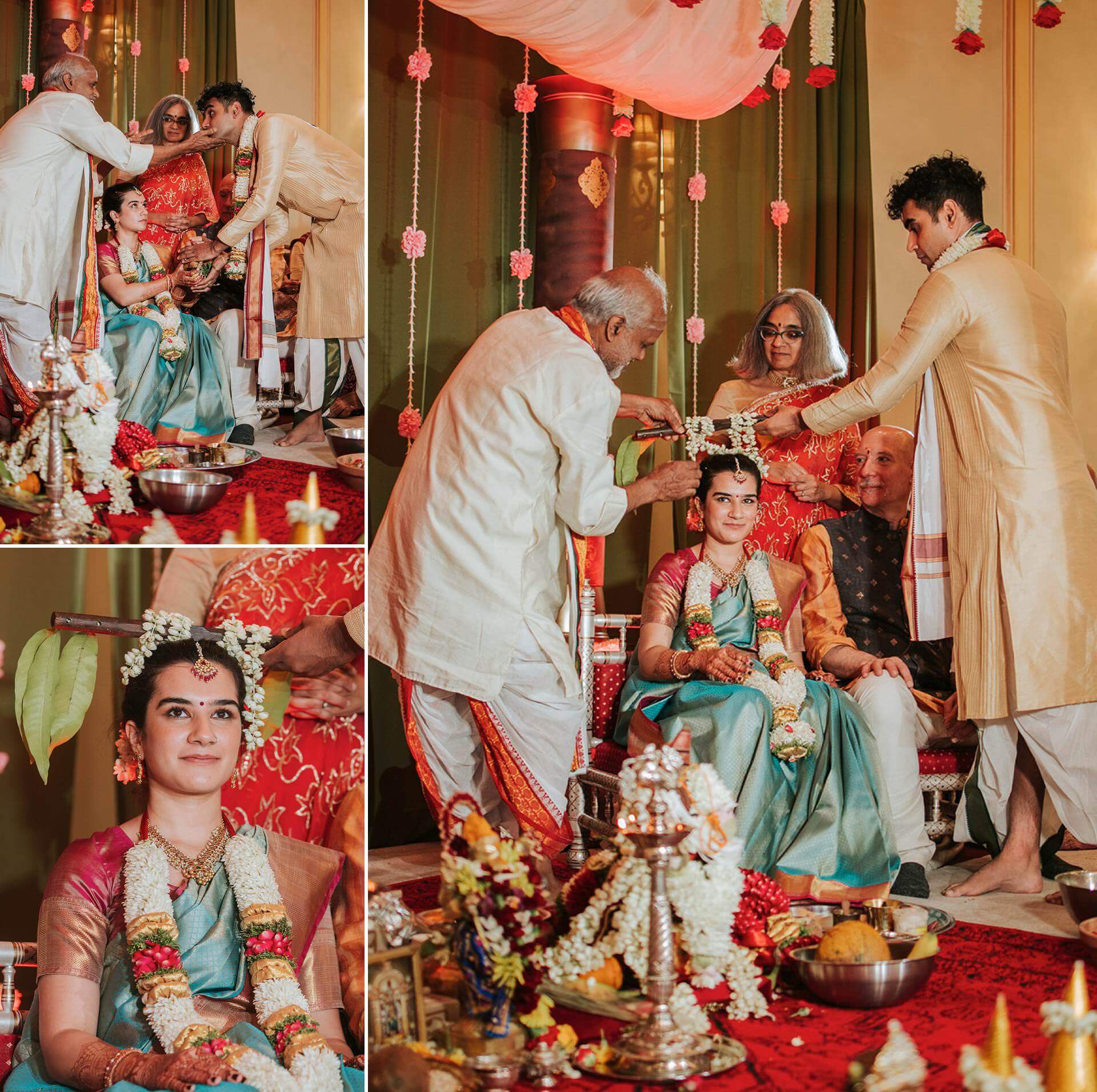South Indian wedding traditions carry a particular visual and emotional richness. The ceremonies are layered, deliberate, and deeply choreographed by generations of meaning. The exchange of garlands — the maalai maatral — drew laughter and gentle competition from the families watching, the kind of joyful chaos that erupts when everyone in the room knows exactly what they’re supposed to feel. The saptapadi, the seven steps taken together around the sacred fire, was something else entirely. Seven promises. Seven circles. Each one is quieter and more concentrated than the last.