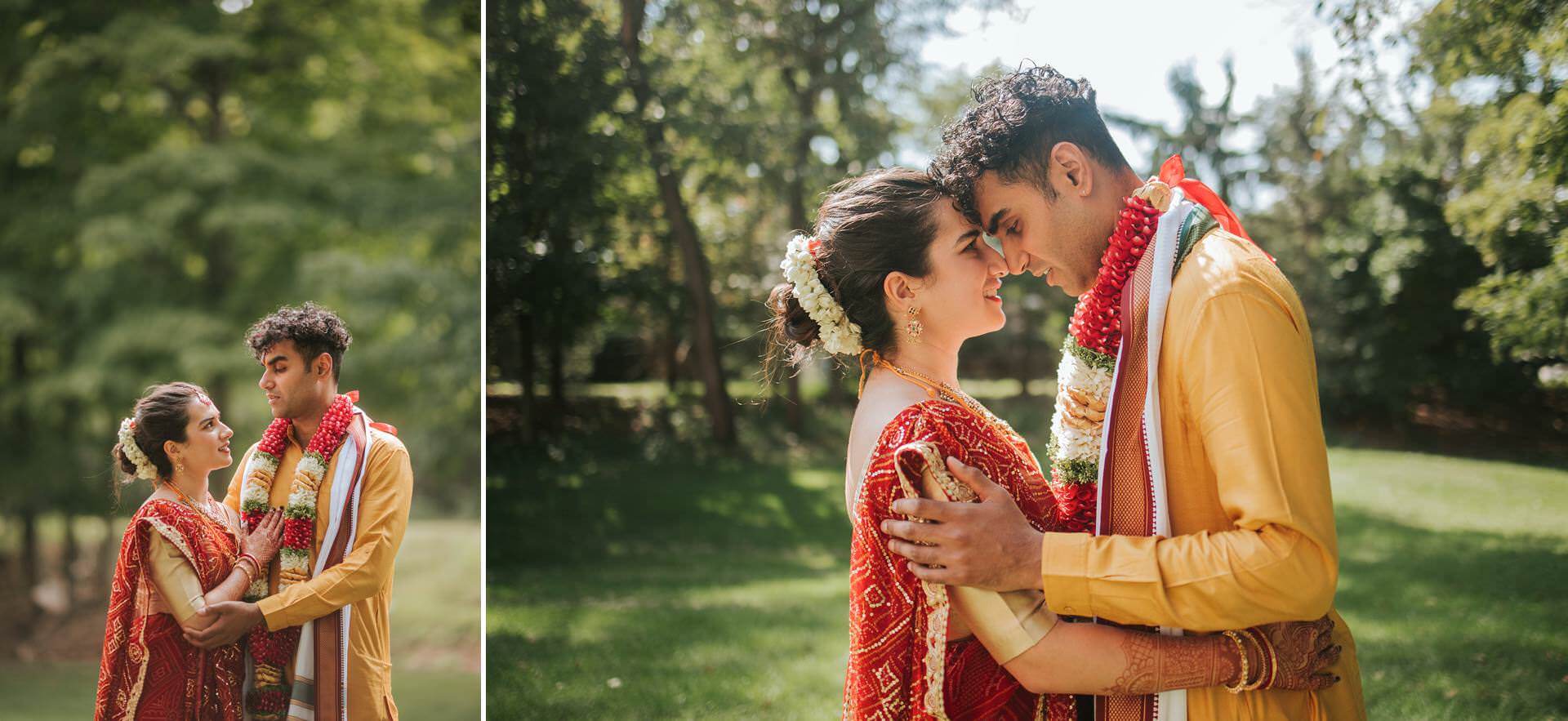 Hindu ceremonies hold space for both the communal and the intimate simultaneously. There is always family — present, loud, loving, involved. And yet, within all of that, there are small private moments between two people that surface quietly if you’re still enough to notice. A look exchanged during a Sanskrit recitation. A hand held just a beat longer than the ritual requires.